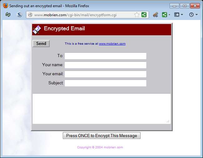 Mobrien.com nabízí bezplatnou zašifrovanou e-mailovou službu, která přenáší vaše e-mailové textové zprávy v šifrované podobě, takže ji nelze na cestě analyzovat na klíčová slova. Co se stane, jakmile se uloží do počítače přijímače, záleží na nich a ochranných bezpečnostních opatřeních, která povolili.