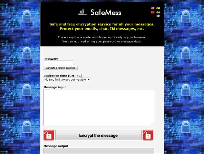 SafeMess můžete použít v jakémkoli moderním webovém prohlížeči s povoleným JavaScriptem. Úspěšně jej otestovali v prohlížečích Internet Explorer 6+, Firefox 2+, Chrome 2+, Safari 3+, Opera 9+ a Opera Mini. Měli byste také být schopni používat SafeMess na pokročilých telefonech a PDA, jako jsou zařízení iPhone a Android. Se staršími telefony Nokia a Sony Ericsson však nefunguje.