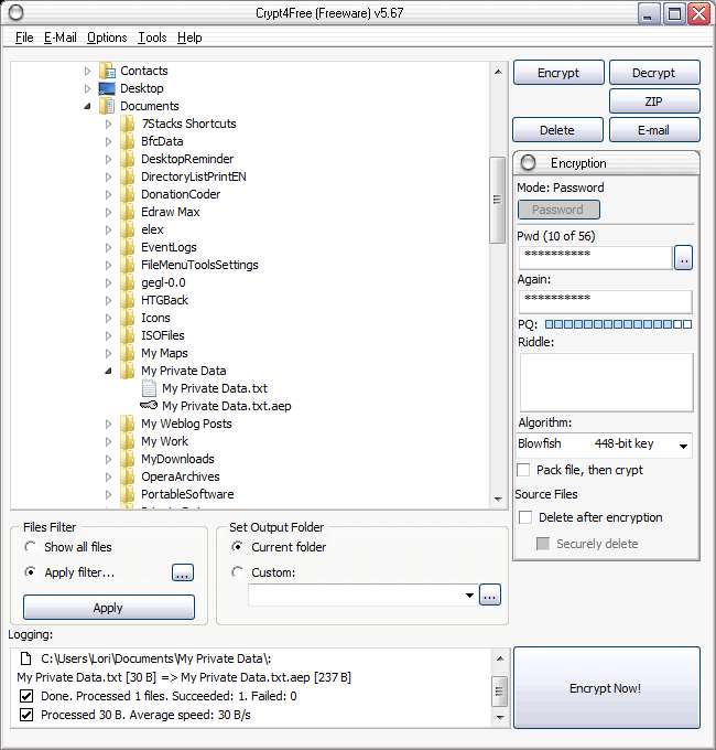 Crypt4Free je bezplatný program, který vám umožňuje šifrovat každý druh souboru na každém druhu média, ať už je to disketa, vyměnitelný pevný disk, jednotka zip, pásková jednotka nebo jiné, pomocí osvědčeného šifrovacího algoritmu DESX. Nabízí plnou podporu .zip a poskytuje možnost procházet existující archivy .zip, extrahovat jejich obsah a dokonce vytvářet nové archivy .zip.
