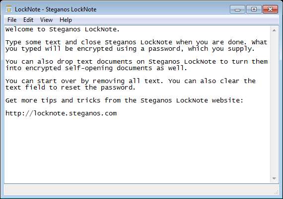 Steganos LockPoznámka je malý, jednoduchý program, který vám umožňuje bezpečně ukládat soukromý text. Například pokud si zakoupíte program, který je určen pouze ke stažení, můžete pomocí LockNote uložit produktový klíč nebo sériové číslo dodávané s tímto programem do stejné složky, abyste vždy věděli, kde jej najdete. Program funguje jako Poznámkový blok Windows, ale když soubor uložíte, budete vyzváni k zadání hesla.