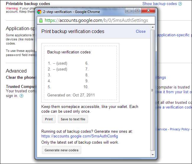 Pokud používáte dvoufázové ověřování, ujistěte se, že máte někde kopii svých obnovovacích kódů.