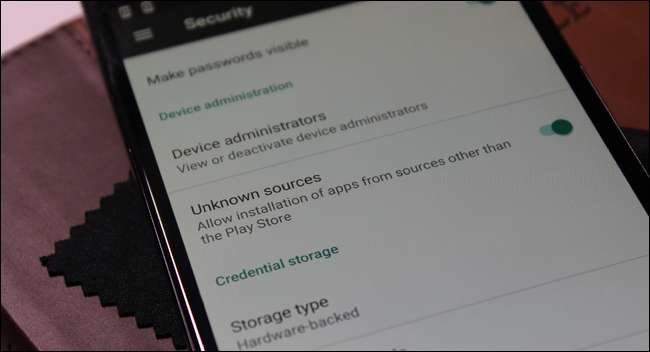 Pokud jste v předchozích verzích systému Android chtěli nainstalovat aplikaci, která nebyla nalezena v Obchodu Play - akt zvaný „sideloading“ —Muselo vás přeskočit do nabídky Nastavení> Zabezpečení a povolit funkci nazvanou „Neznámé zdroje“. To v podstatě řeklo telefonu, aby ignoroval bezpečnostní protokoly nastavené pro aplikace mimo oficiální kanály a pokračoval a umožnil jejich instalaci.