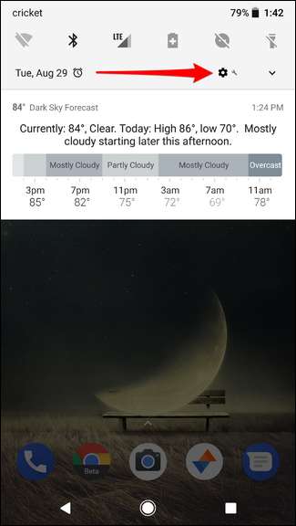 Nejprve zatáhněte za oznámení a klepnutím na ikonu ozubeného kola přejděte do nabídky Nastavení.