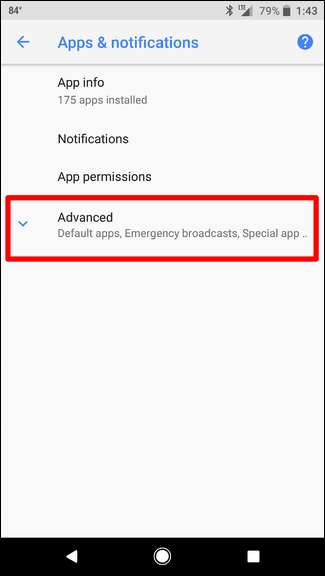 Odtud klepněte na Aplikace a oznámení a poté rozbalte rozbalovací nabídku Upřesnit.