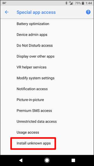 S Oreo se tedy Google rozhodl změnit fungování funkce Neznámé zdroje. Místo jednoduchého přepínače, který umožňuje žádný aplikace ke stažení a instalaci aplikací třetích stran, tato funkce je nyní povolena pro jednotlivé aplikace. Je to neuvěřitelně chytré.
