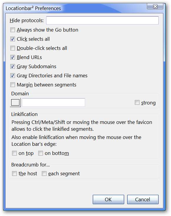 Co když byste chtěli ještě více upravit vzhled webové adresy nebo přidat nějaké další funkce? Jak můžete vidět zde, můžete zrušit efekt šednutí, zvýraznit název domény, zvolit vlastní barvu názvu domény nebo nechat tlačítko Go zobrazit vždy, abyste jen poukázali na několik.
