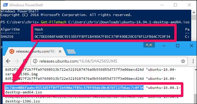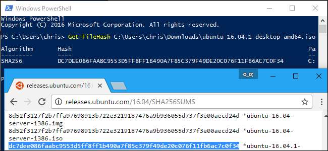 Get-FileHash C: \ path \ to \ file.iso - Algoritmus SHA256