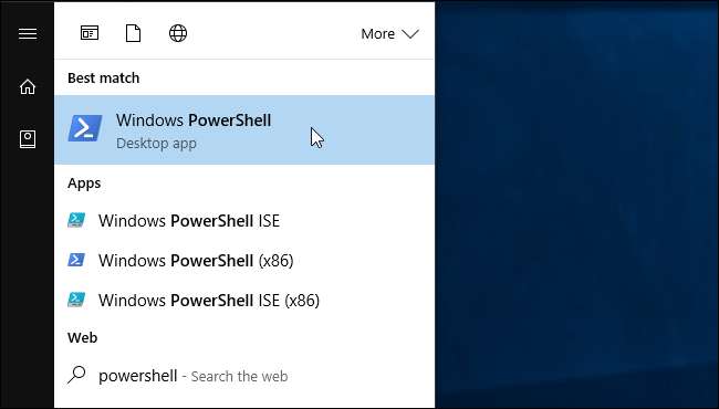 Chcete-li začít, otevřete okno prostředí PowerShell spuštěním zástupce „Windows PowerShell“ v nabídce Start.