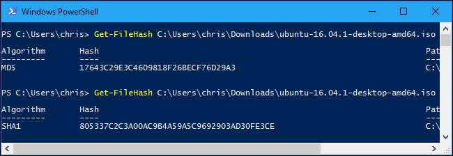 Get-FileHash C: \ path \ to \ file.iso - Algoritmus SHA1