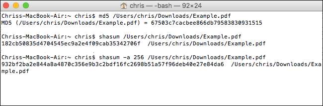 Ve výchozím nastavení příkaz zobrazí hash SHA-256 pro soubor. Můžete však určit hashovací algoritmus, který chcete použít, pokud potřebujete MD5, SHA-1 nebo jiný typ hash.