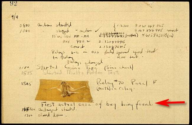Hopper našel příběh baví, protože poté, co se často loví chyby v počítači (jako v hardwarových a softwarových závad), její tým konečně našel skutečný, doslovný hmyz uvnitř počítače. Proto je nápis „první skutečný případ chyby bylo nalezeno.“