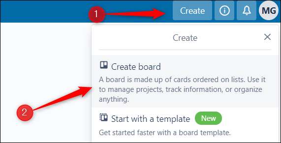 Chcete-li vytvořit desku, přihlaste se ke svému účtu a klepněte na tlačítko "Vytvořit" v pravém horním rohu okna. Dále klikněte na "Vytvořit tabuli" z rozevírací nabídky, která se zobrazí.