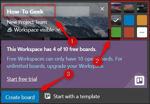 Zobrazí se malé okno. Zde dát své desce jméno, vyberte téma pro něj a potom klepněte na tlačítko "Vytvořit tabuli".