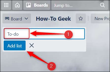 Pokud je vaše deska zcela nová, uvidíte textové pole v levém horním rohu okna s modrým tlačítkem "přidat seznam" pod ním. Do textového pole zadejte název seznamu a klepněte na toto tlačítko.