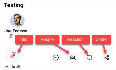 Jakmile spustil prostor, můžete zapnout nebo vypnout mikrofon, zvute další a přizpůsobit mluvící role, vybrat reakci a sdílet prostor na vašem krmení Twitteru.