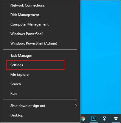 Chcete-li začít, přejděte do nabídky nastavení systému Windows kliknutím pravým tlačítkem myši na tlačítko nabídky Start systému Windows a kliknutím na tlačítko „Nastavení“.