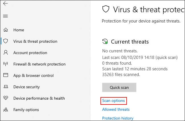 Svou historii skenování můžete zkontrolovat později kliknutím na „Historie ochrany“ v nabídce „Ochrana před viry a hrozbami“.