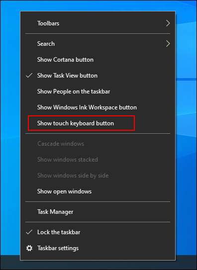 Pro snadný přístup k klávesnici na obrazovce klikněte pravým tlačítkem na hlavní panel Windows a klikněte na „Zobrazit dotykovou klávesnici“.