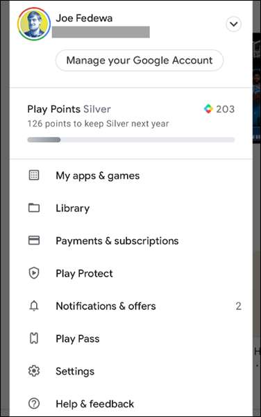 To rozšíří nabídku se všemi možnostmi, které používáte k zobrazení. To zahrnuje "Moje aplikace a amp; Hry, "" Knihovna, "" Platby & amp; Předplatné "Nastavení", " Play Points. a další.