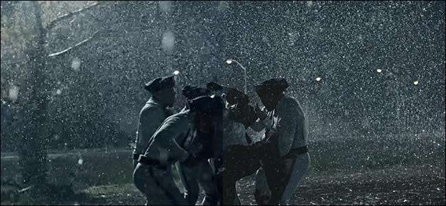 Pokud je déšť takový problém, proč si toho nevšimnete, když sledujete disk Blu-Ray? Odpověď spočívá v dostupné přenosové rychlosti. Zatímco disky Blu-Ray mohou podstoupit obrovské množství komprese, stále mají dostatečně vysokou datový tok, aby mohly vykreslit všechny ty dešťové kapky a kousky konfet. Ve skutečnosti, pokud byla scéna dostatečně zaneprázdněná nebo dostatečně chaotická, můžete si všimnout určitého zhoršení kvality obrazu, ale musíte za to přimhouřit oči.
