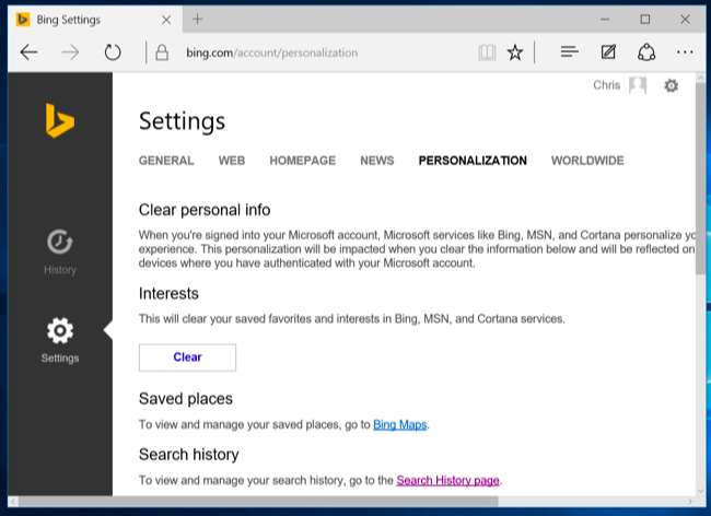 - 26. Bing-søgehistorik - Søg ved hjælp af Windows 10s Start-menu og Bing-søgningen i Edge, og du opbygger en Bing-søgehistorik, der er bundet til din Microsoft-konto. Du kan se og rydde denne historie fra https://bing.com/profile/history .