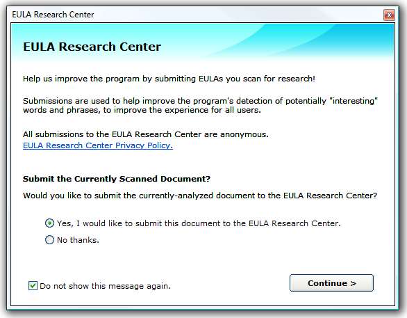 Når du installerer software, er en af de første ting, du skal gøre, at acceptere EULA (slutbrugerlicensaftale) ... du ved, at 12.000 ord små bogstaver inkluderet i stort set alle softwareprogrammer, du installerer. Jeg er lige så skyldig som de andre 98% af pc-brugere derude, der ikke læser dem, og bare skal du klikke på “Jeg er enig” og fortsætte. For alt hvad jeg ved, accepterer jeg måske at give væk min førstefødte!