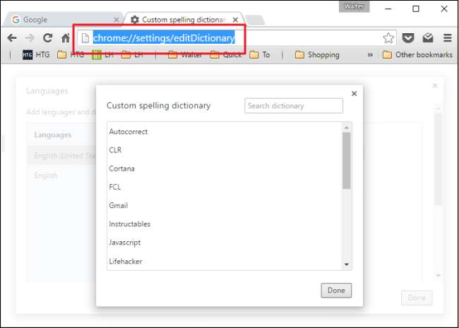 Bogmærkeindstillingssider kan spare dig for en god del tid til sider, du åbner ofte, og gøre sider lettere at finde igen, hvis du ikke bruger dem ofte. Et perfekt eksempel på dette er siden til styring af Chromes tilpassede ordbog så du kan fjerne ord, du tilføjede ved et uheld. Du skal ikke kun huske at kigge i sektionen med avancerede sprogindstillinger, men det tager et halvt dusin klik at komme derhen.