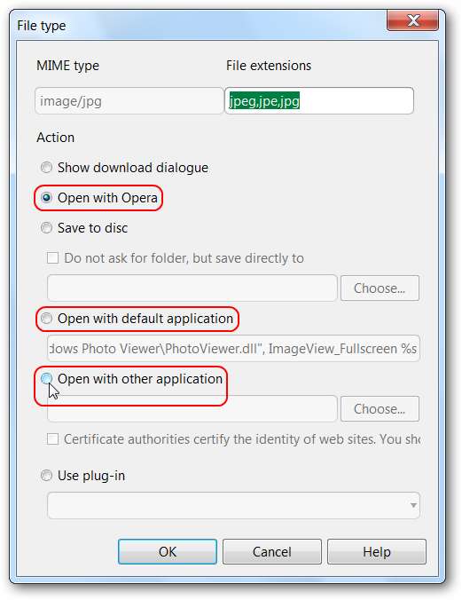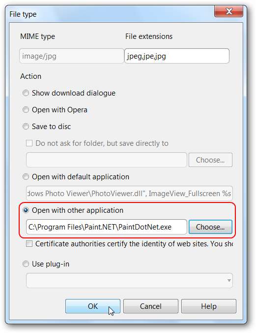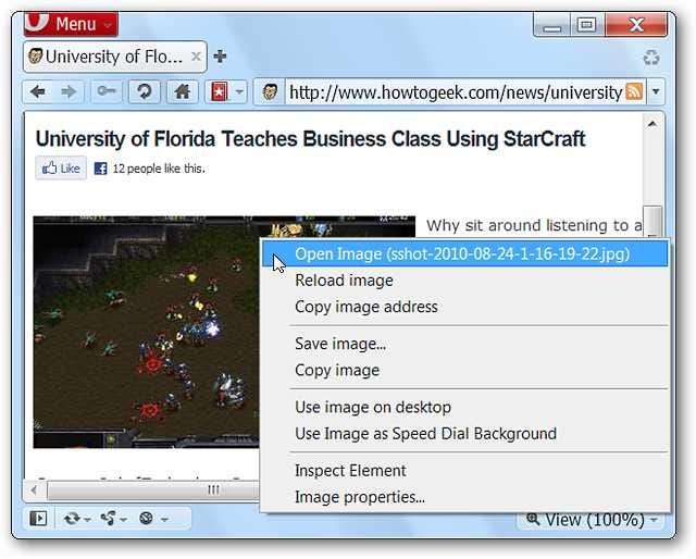 Som du kan se Åbn billede kommando åbnede billedet i Opera. For de fleste er dette helt fint, men hvad hvis du vil bruge en bestemt fotoapp på dit system til at se billedet? Alt hvad du skal gøre er at finjustere handlingsindstillingen for den filtype, og alt vil være godt.