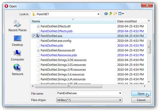 Find den ønskede exe-fil til din yndlingsapp, vælg den, og klik Åben .
