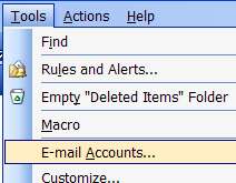 Vælg først Værktøjer og derefter E-mail-konti i rullemenuen: