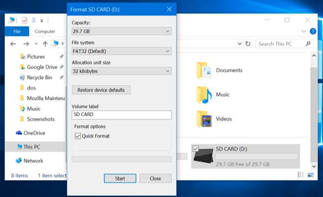 Du skal sikre dig, at Micro SD-kortet er det formateret med FAT32- eller exFAT-filsystemet så Fire Tablet kan læse den. De fleste SD-kort skal være formateret med disse filsystemer. Hvis du er i tvivl, skal du højreklikke på SD-kortet i computervisningen i Windows, vælge “Format” og sikre dig, at det korrekte filsystem er valgt.