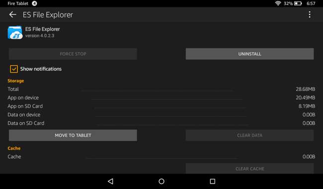 Aktivér indstillingen "Installer understøttede apps på dit SD-kort", og din Fire Tablet installerer apps, du i fremtiden downloader til SD-kortet, hvis appen understøtter dette. Enhver af appens brugerspecifikke data gemmes stadig i dens interne lager.