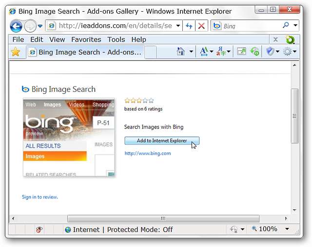 To enkle trin har den nye accelerator installeret: klik Føj til Internet Explorer for at starte processen og bekræfte installationen, når det sekundære vindue vises.