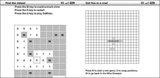Din Kindle er ingen smartphone, og der er slet ingen chance for, at du vil være overbevist om det af kvaliteten af spillene på den. Ikke desto mindre er der nogle små påskeæg-spil skjult på fænge. Fra hovedskærmen kan du press ALT+SHIFT+M for at fylde op min fejemaskine. Når du har indlæst Mine Sweeper, kan du tryk på G-tasten for at indlæse en kopi af GoMoku . Du bliver ikke forvirret og tror, du spiller Angry Birds, men hvis du tager en pause fra at læse en tæt roman, er det en dejlig lille distraktion.