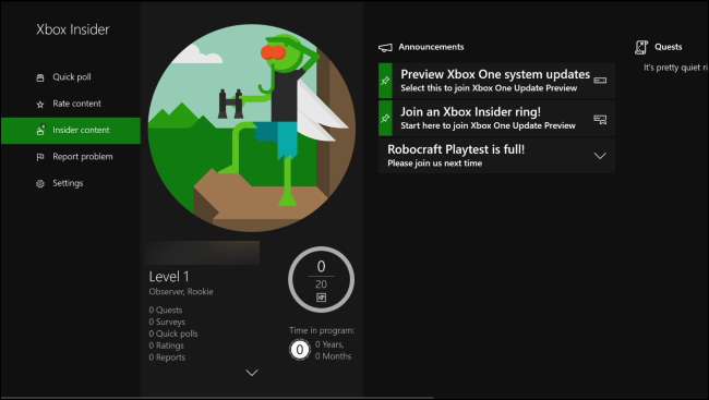 Microsoft tilbyder et "Xbox Insider-program", der fungerer meget som Windows Insider-programmet. Deltag i det for at få adgang til nye versioner af Xbox systemsoftware og apps, før alle andre gør det.