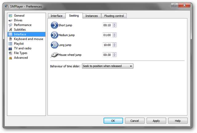 Du kan også ændre, hvor lang tid der springes over, med piletasterne og side op / side ned genveje. For at gøre dette skal du klikke på Interface-elementet i listen til venstre og derefter på fanen Søger.
