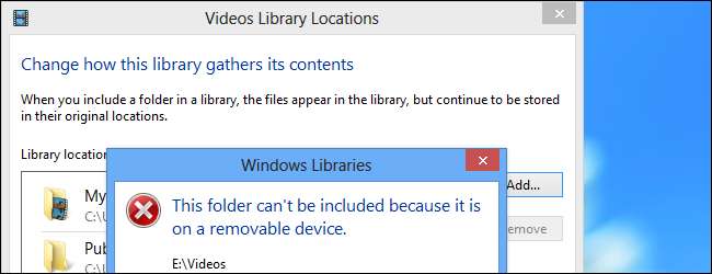 Moderne Windows 8-apps såsom Xbox Music, Xbox Video og Photos-apps kan kun vise indhold, der er gemt i dine biblioteker. Du vil muligvis gemme mediefiler på et SD-kort eller USB-drev, men Windows stopper dig.