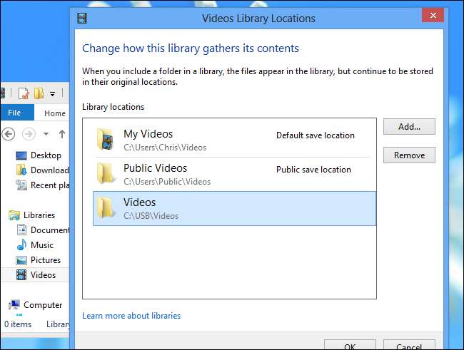 Windows bemærker ikke, at mappen er på en flytbar enhed og giver dig mulighed for at tilføje den normalt. Gentag denne proces for hvert bibliotek.