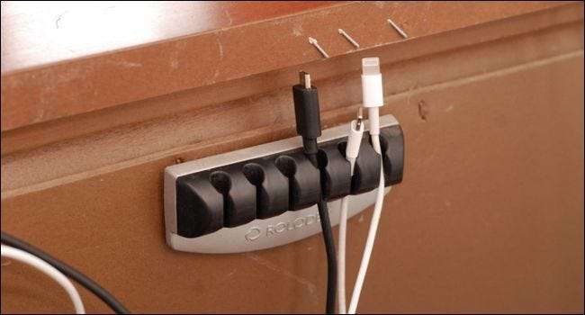 Selvom det kun er en forbedring i sig selv at tilføje et alt-i-et-opladningssted til dit natbord, er der et par billige og hurtige tilføjelsesjusteringer, du kan foretage for at forbedre din opsætning. Med din multi-port-opsætning har du flere kabler i spil. I stedet for at spilde tid på at fiske rundt efter kablerne bag dit natbord, kan du holde dem lige ved hånden med en simpel kabelarrangør.