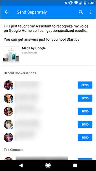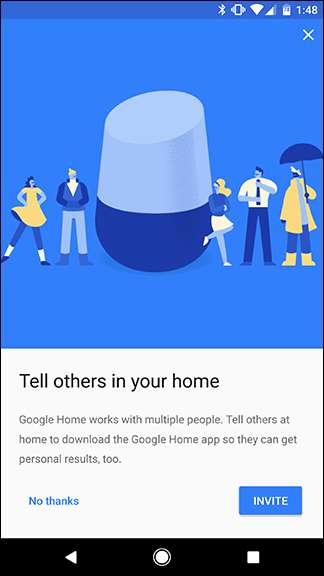 Når du er færdig, vil Google tilbyde at invitere andre til at gøre det samme. Tryk på den blå Inviter-knap, og send et link til dine familiemedlemmer eller værelseskammerater med din valgte kommunikationsapp. De bliver bedt om at installere Google Home-appen og gå gennem de samme trin, som du lige har gjort.