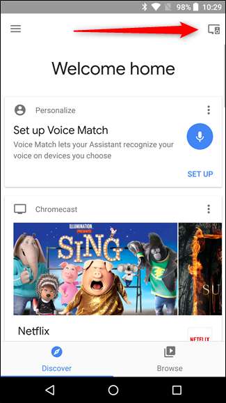 For at konfigurere det skal du åbne Google Home-appen og trykke på enhedsikonet i øverste højre hjørne.