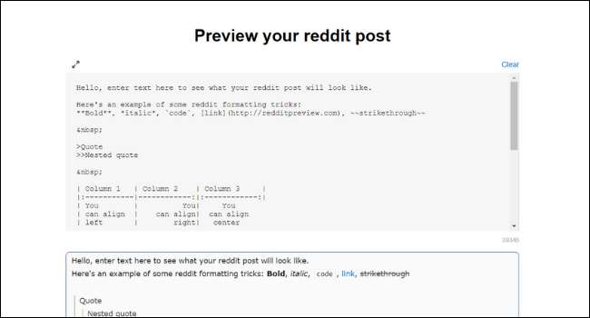 Hvis du vil sørge for, at din tekst er god til at gå, før du sender den, kan du prøve at bruge en markdown preview editor. Et par eksempler på disse er Markdown Live Preview. Vi Reddit preview. , og. Stackedit. . Hvis du bruger den gamle version af Reddit på Desktop, kan du prøve at bruge Reddit Enhancement Suite. , en browserudvidelse, der leveres med en indbygget markdown preview boks, blandt andre funktioner.