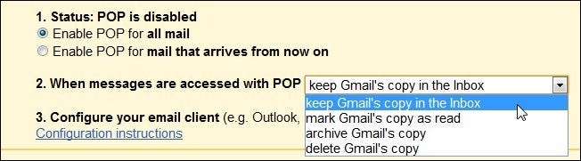 Afhængigt af den webbaserede e-mail, du bruger, skal du muligvis aktivere adgang, inden du fortsætter. I tilfælde af Gmail, vores testtjeneste til denne tutorials, skal du navigere til Valgmuligheder -> Mailindstillinger -> Videresendelse og POP / IMAP og skift derefter følgende indstillinger 1. Aktivér POP for al post og 2. Når der er adgang til meddelelser med POP beholder Gmails kopi i indbakken .