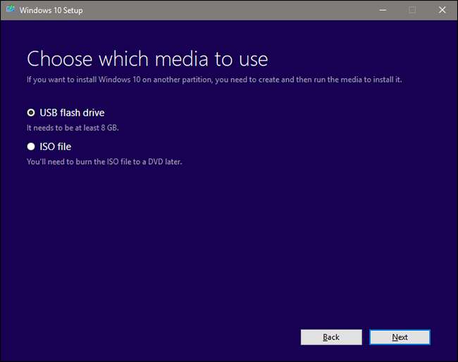 Klik på "USB-flashdrev" og derefter "Næste". (Hvis du brænder til en DVD i stedet, kan du vælge "ISO-fil" og brænd det til disken efter downloadet).