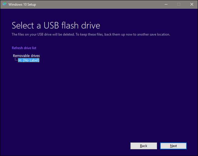 Vælg det tomme USB-drev, du lige har indsat. (Hvis du ikke er sikker på, hvilket drev dette er, skal du markere "Denne computer" eller "Denne pc" i File Explorer for at finde ud af det.) Klik på Næste.