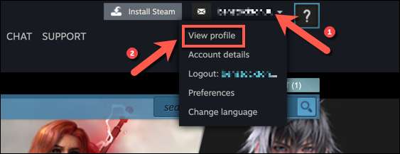 For at begynde at åbne dampklienten på din Windows 10 PC. eller Mac, eller besøg Steam Website og log ind på din konto. Når du har logget ind, skal du vælge dit brugernavn i øverste højre hjørne og vælge "Vis profil" i rullemenuen.