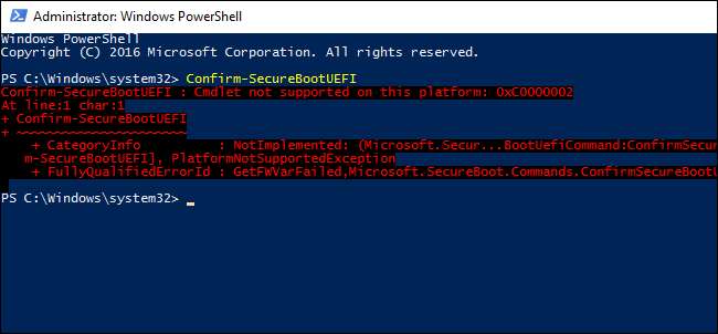 Hvis din pc's hardware ikke understøtter Secure Boot, vises fejlmeddelelsen "Cmdlet understøttes ikke på denne platform".