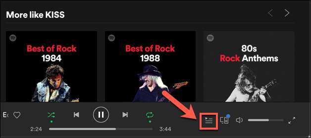 I afspilningsmenuen skal du trykke på kø-ikonet i nederste højre hjørne.