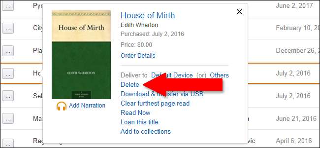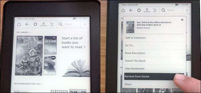 Det er let at fjerne et element fra en individuel Kindle: tryk langsomt på bogen på startsiden, og tryk derefter på "Fjern fra enhed."