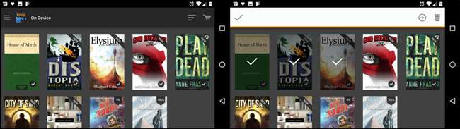 På Kindle-smartphone-appen er det meget ens, men du kan trykke længe på for at vælge flere emner og derefter trykke på sletteikonet eller "fjern fra enhed."